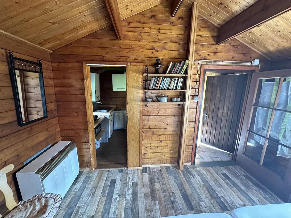 Das Krusehaus hat einen Wohn-Schlafbereich mit 2 Etagenbetten und bietet Platz für 4 Personen. Außerdem befinden sich dort ein Badezimmer und eine Kochnische.
