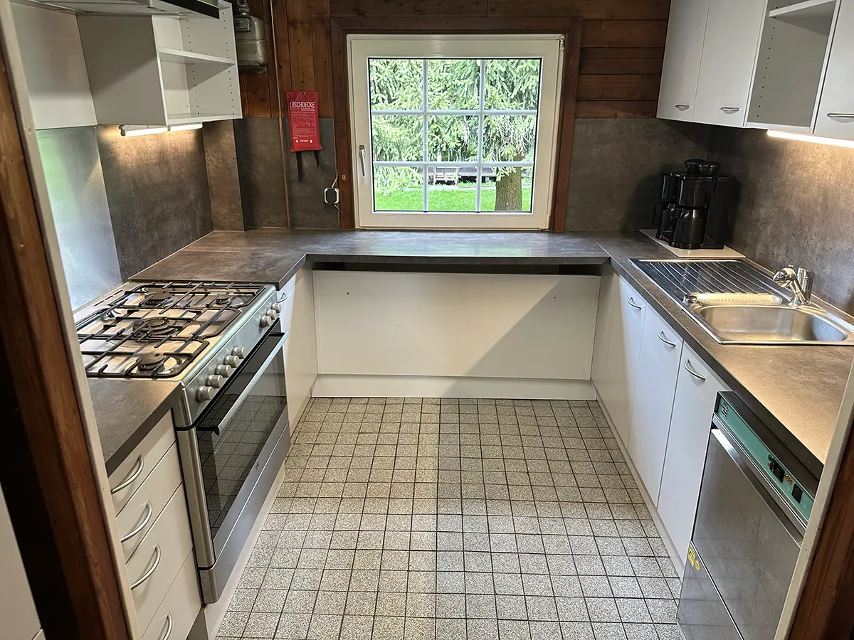 Das Gästehaus bietet seinen Gästen außerdem zwei getrennte Sanitärbereiche mit Duschen und Toiletten. Die neue Küche ist komplett mit Geschirr für 40 Personen, Kochutensilien und Gastrospülmaschine ausgestattet. Auch eine Terrasse kann von unseren Gästen genutzt werden.