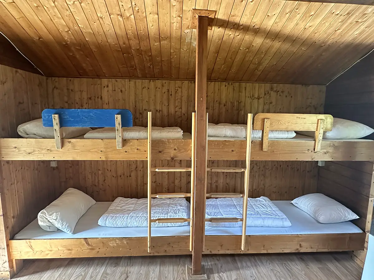 Das Gästehaus mit seinem Gemeinschaftsraum kann Gruppen bis zu 32 Personen in 8 Zimmern zu je 4 Betten aufnehmen. Jedes Zimmer hat fließend kalt und warm Wasser.