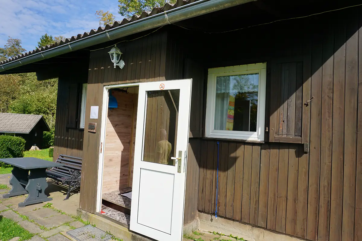 Das Baethgehaus ist eine kleine Hütte mit 2 Schlafmöglichkeiten, einer kleinen Küche und einem Sanitärbereich.