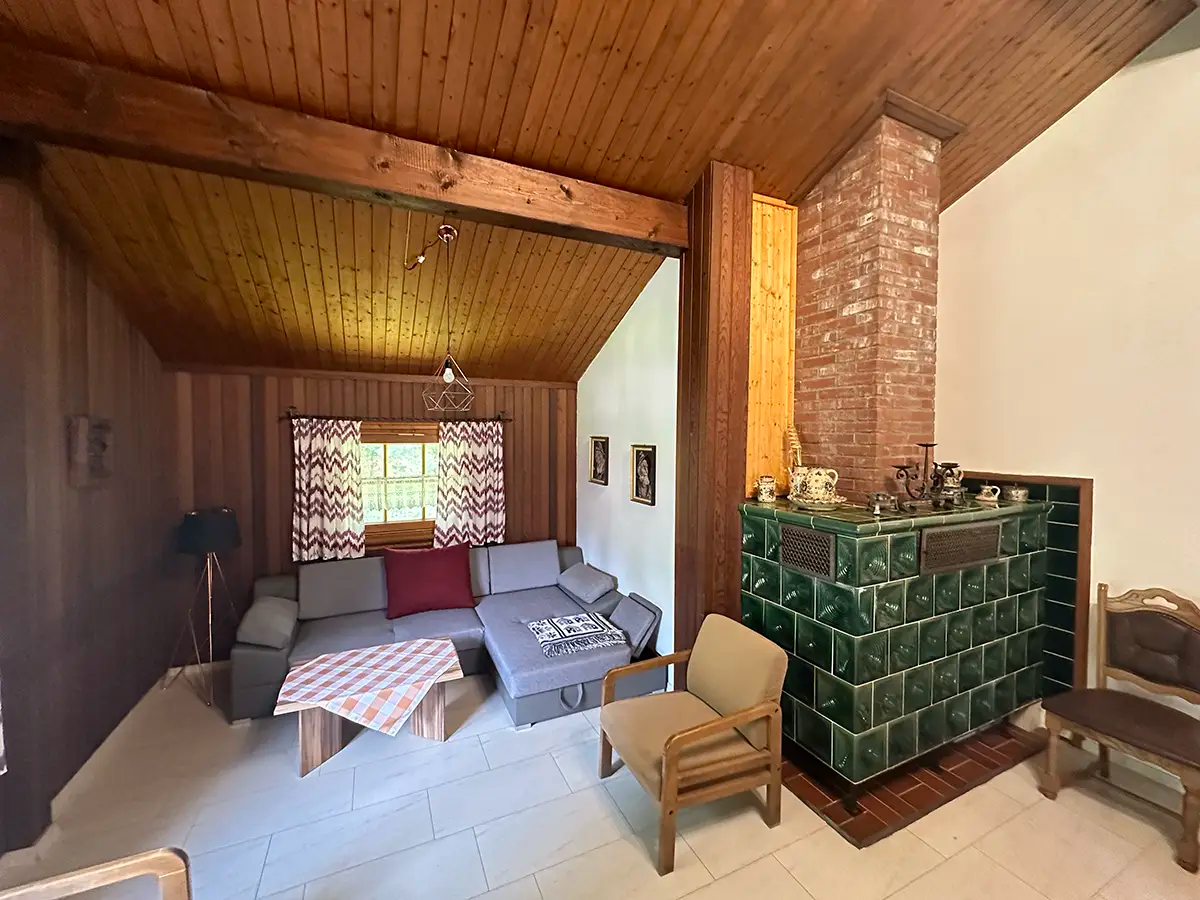 Das Menzelhaus verfügt über einen gemütlichen Wohnraum mit zwei Stapelbetten. Eine Essecke im Wohnzimmer und eine Küche ergänzen die Ausstattung. Der Schlafraum verfügt über ein 140 cm – Bett.
